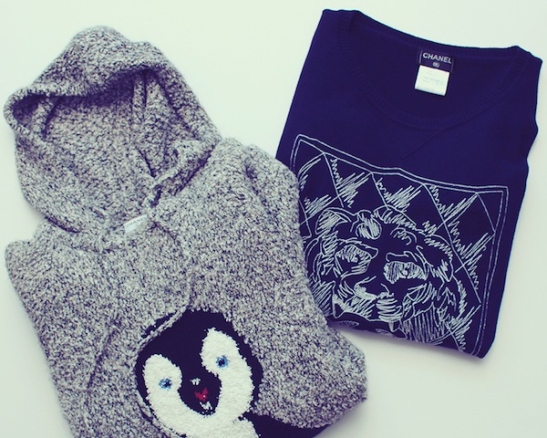 As you probably noticed, Chanel rarely produces menswear, and when they do, I don’t always like it. Not all boutiques carry menswear, but I think Chanel’s male clientele is definitely growing, and there seems to be an increase in demand for Chanel menswear and accessories, at least in Vancouver, so the buyers are taking notice. Over the years I’ve been fortunate enough to acquire a few RTW pieces. My first piece was a mohair ‘Penguin’ sweater from 2007. I have the ecru tweed jacket from 2011, the same one that male model Brad Kroenig wore on the runway with his son – super classic shape, a Chanel staple. My latest acquisition is a cashmere sweater with an embroidered lion crest.