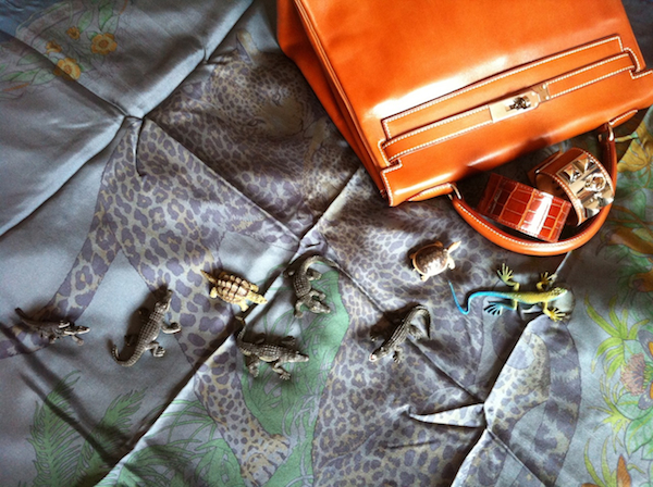 September 19, 2012 at 7:53 amHi Kat thanks for the lovely interview! It was a pleasure “chatting” with you too. The first pic isn’t a Hermes plume: it’s a matte Sky croc Isabella by KPC Collection. The Barenia bag is a HAC and in the photo of the two horses, the horses are clay not bronze. Sorry, proofreading is an occupational hazard of mine! xx