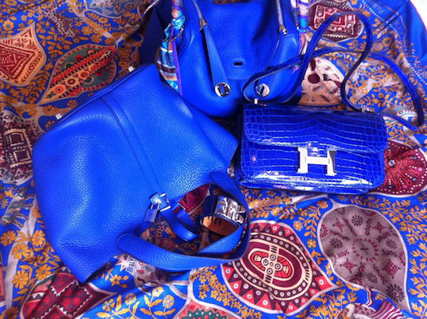 I have a soft spot for my Bleu de Malte Clemence Cirkin, which has a lighter blue (Ciel) inside and on the base. My lovely Hermes store manager saw this on a buying trip, knows I love blues and thought I’d like it. And I did!