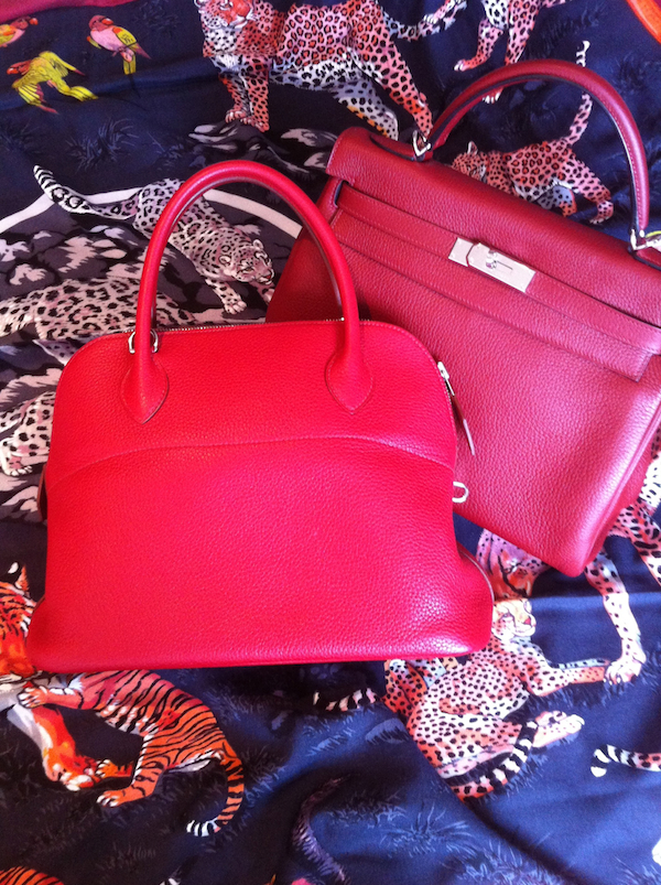 I don’t have many red bags, but I love my Rouge H Clemence 32 Kelly and Rouge Garance 31 Bolide.