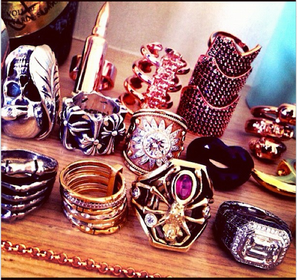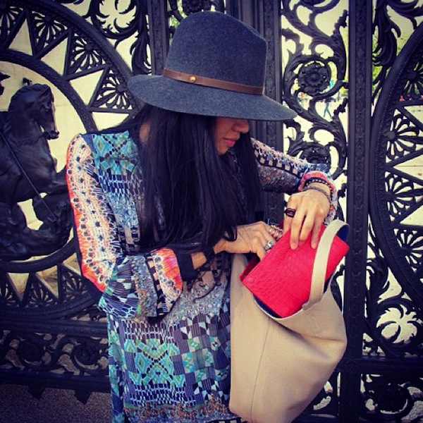 Katiana: Right now, a sample of our gold brushed Katiana crocodile clutch that I borrowed from Elsa months ago and never returned (I’m waiting for our SS13 collection to come in so I can finally claim my own). Costume necklaces I found from a Hong Kong based designer, Venna (I’m literally wearing one of them right now as I type this). Hand me down jewelry from my grandmother and mother; diamond studs, vintage Cartier bamboo bangles.